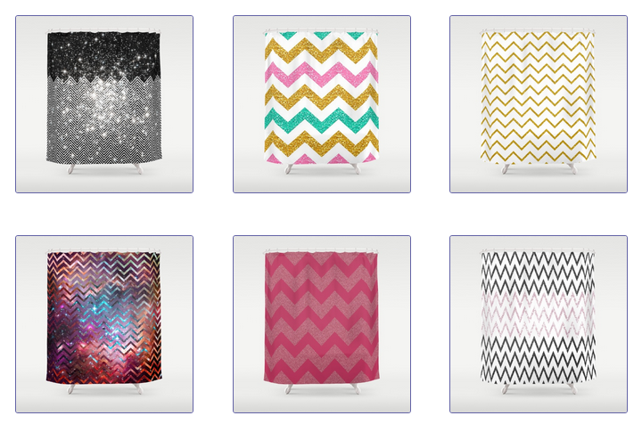 Stunning and fun glittering chevron print shower curtains for the bathroom. Lots of glittery colors to choose from: gold, black, pink, green, blue, red, purple, orange, multicolor. . Powered by RebelMouse